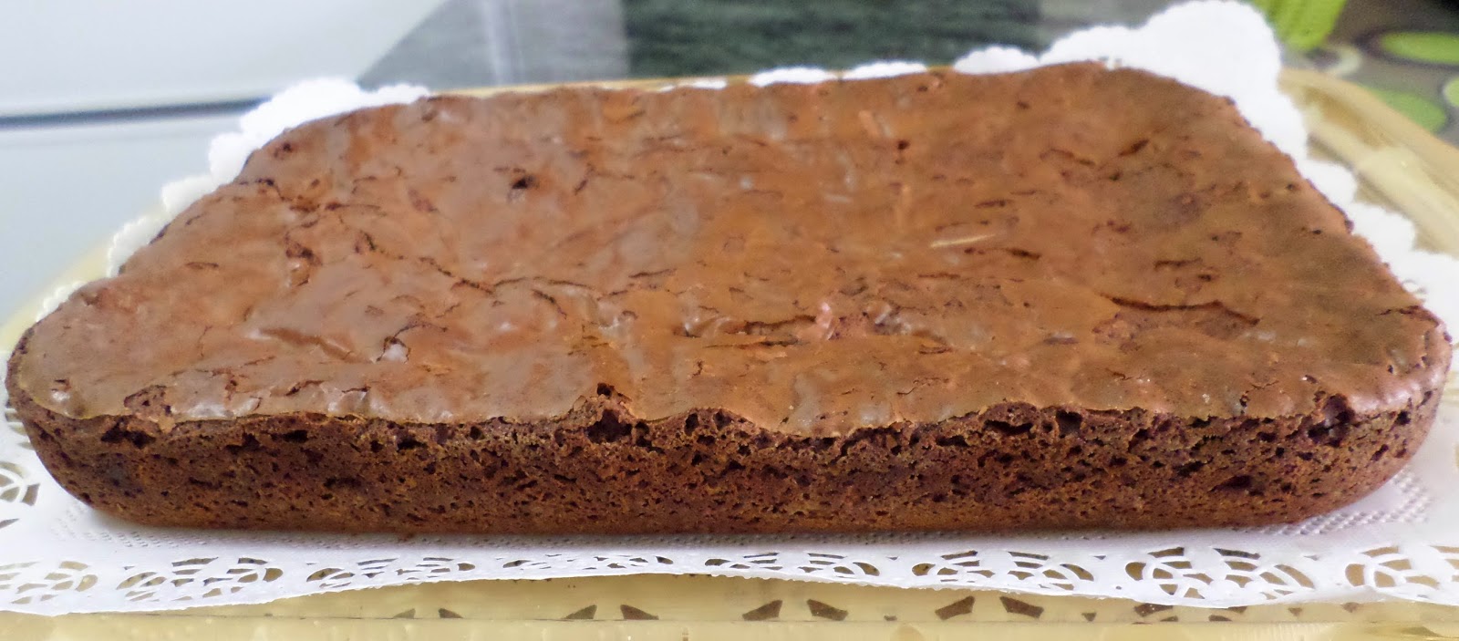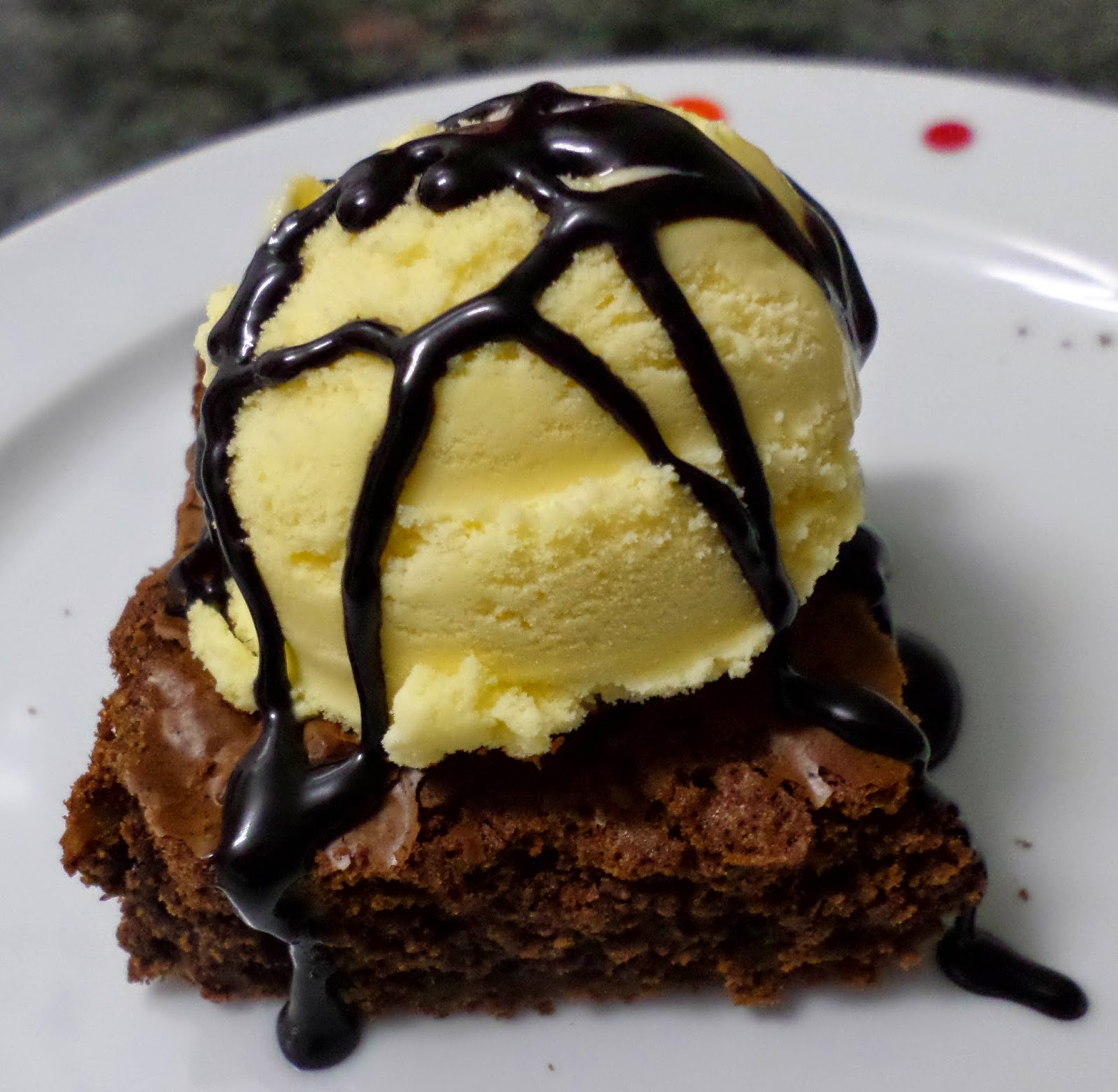 Cortamos en cuadraditos y para servir untamos con chocolate fundido y adornamos con sirope de chocolate.